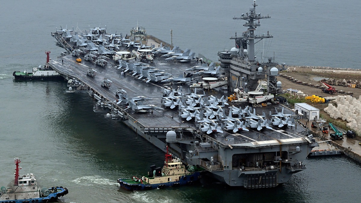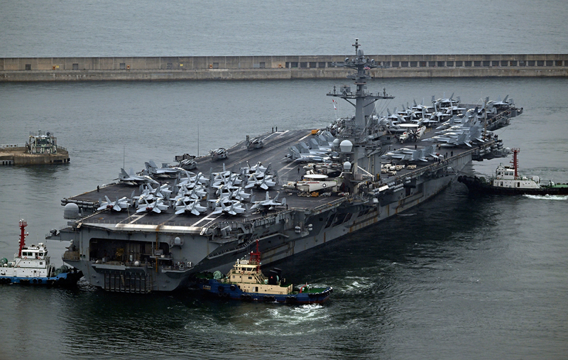 Uçak gemisinin, güdümlü füze taşıyan USS Halsey ve savaş gemisi USS Daniel Inouye ile birlikte deniz üssüne girdiği aktarıldı.