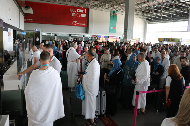 Başkent Üsküp'teki Uluslararası Üsküp Havalimanı'ndan kutsal topraklara hareket eden hacı adayları, yakınları tarafından uğurlandı. İlk grup 180 hacı adayından oluştu.