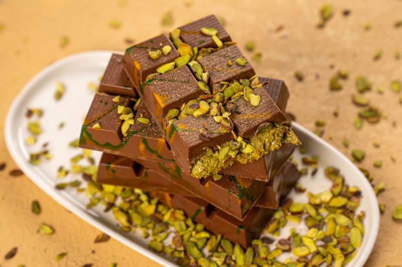 Dubai'nin fıstıklı künefe çikolatasının ünü dünyayı kasıp kavurdu. Dubai çikolatasının, Antep fıstığı ezmesi ve künefe dolgulu sütlü çikolata tarifi, BAE'de butik bir çikolata mağazasına ait. Mısır kökenli İngiliz Sarah Hamouda, hamileliği sırasında çikolata aşermesi üzerine aradığı tadı hiçbir çikolatada bulamayınca kendi tarifini geliştirdi; böylece Dubai çikolatasını ortaya çıkardı.