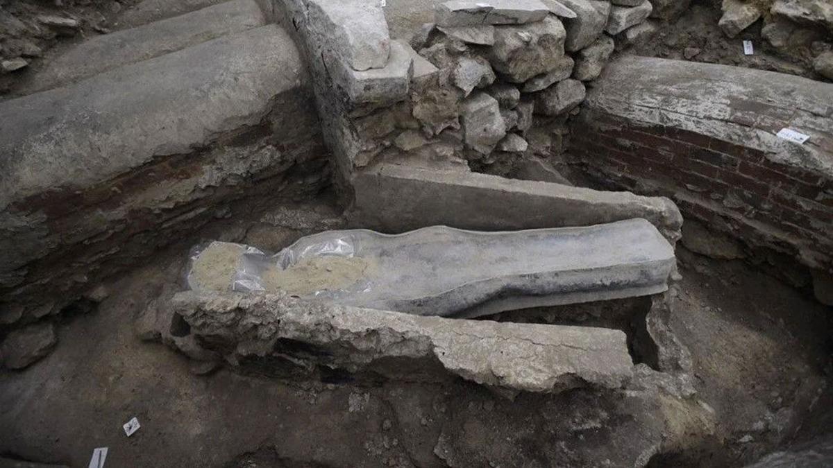 Bu ağın orta kısmında ise 14. yüzyıldan kalma iyi korunmuş kurşun bir lahit bulundu.