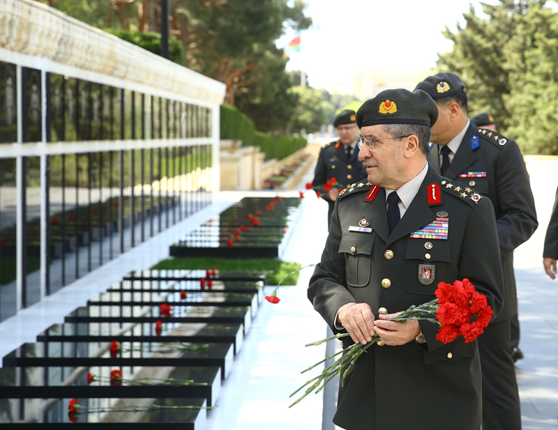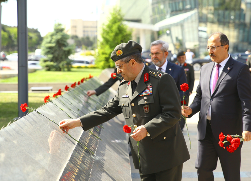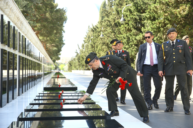 Başkent Bakü'deki temasları çerçevesinde önce merhum Cumhurbaşkanı Haydar Aliyev'in mezarını, daha sonra Bakü Şehitler Hiyabanı'nı ziyaret eden Orgeneral Bayraktaroğlu, burada yetkililerden 20 Ocak 1990'da yapılan katliamla ilgili bilgi aldı.