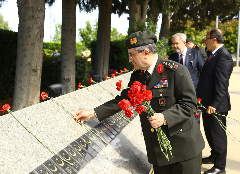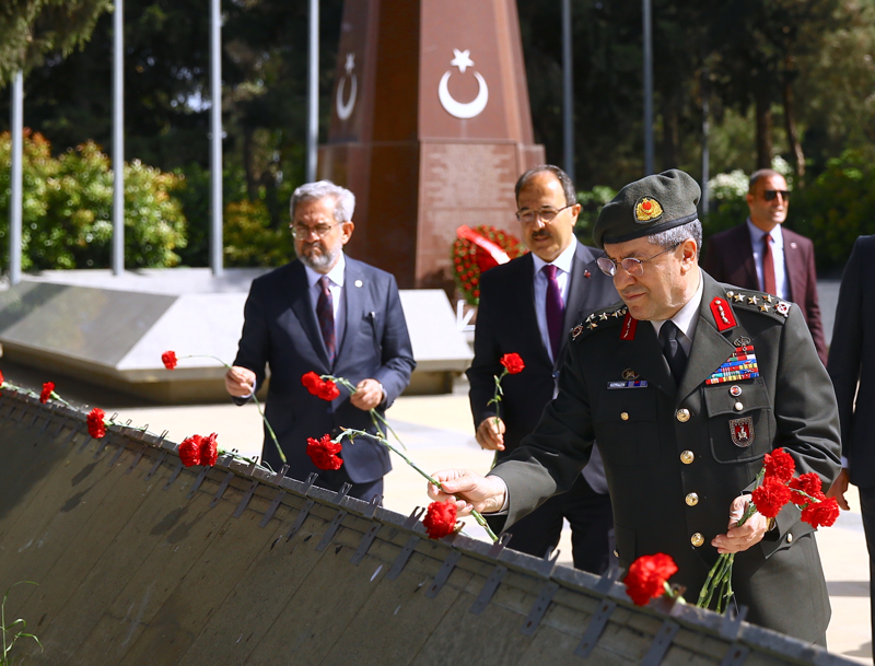 Yetkililerden Bakü Türk Şehitliği konusunda da bilgi alan Orgeneral Bayraktaroğlu, temsili mezarlara karanfil bıraktı.