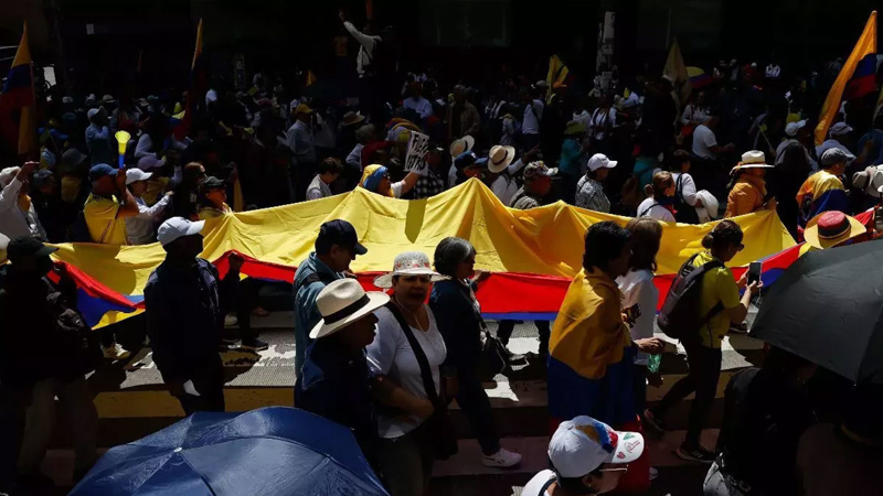 Kolombiya'nın başkenti Bogota başta olmak üzere çeşitli kentlerde yürüyüşe katılan kalabalık gruplar, hükümet politikalarına tepki gösterdi.