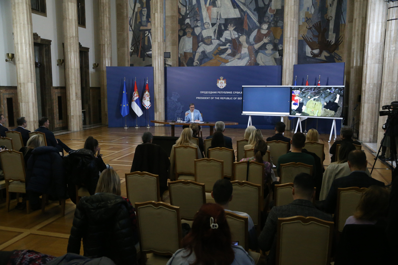 Vucic, Kosova'nın kuzeyindeki Zubin Potok'ta bulunan ve ülkenin su ve elektrik tedarikinde kritik öneme sahip İber Lepenci su kanalına yapılan saldırı ve Sırbistan'a yöneltilen suçlamalara ilişkin başkent Belgrad'da basın toplantısı düzenledi.