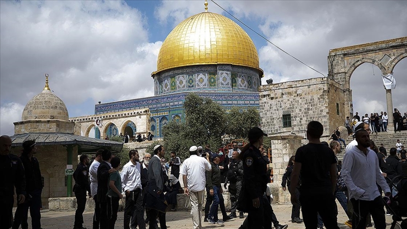 Filistin topraklarını gasbeden İsrailliler, sabah saatlerinden itibaren büyük gruplar halinde, İsrail polisinin koruması altında Mescid-i Aksa'ya baskınlar gerçekleştirdi.