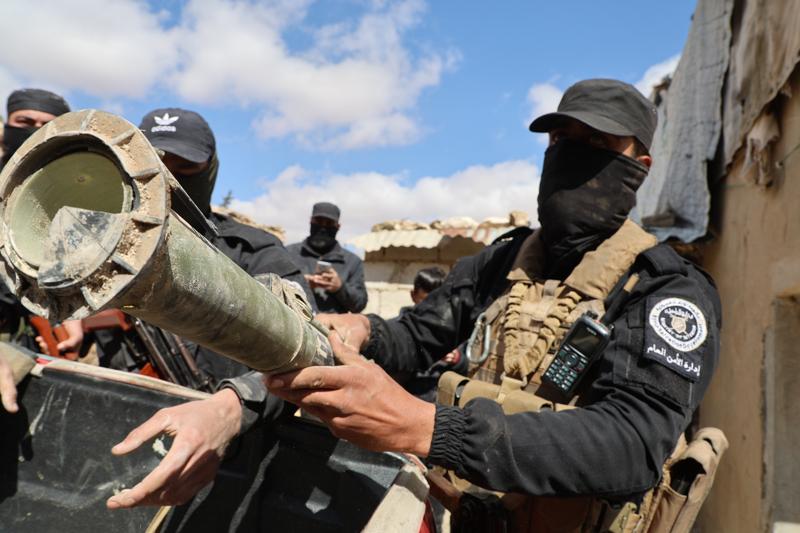 Suriye resmi haber ajansı SANA'nın İçişleri Bakanlığı kaynaklarına dayandırdığı haberine göre, Genel Güvenlik İdaresi tarafından gerçekleştirilen operasyon kapsamında, Humus'un kırsalındaki Mudabi köyünde terk edilmiş bir su kuyusuna gizlenmiş silah ve mühimmat bulundu.