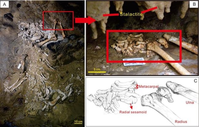 Xinhua'nın haberine göre, Guicou Bilimler Akademisi'ne bağlı Dağ Kaynakları Enstitüsünden araştırmacılar, Zunyi kentindeki Şuanghı Mağarası'nda iki dev panda fosili bulunduğunu bildirdi.
