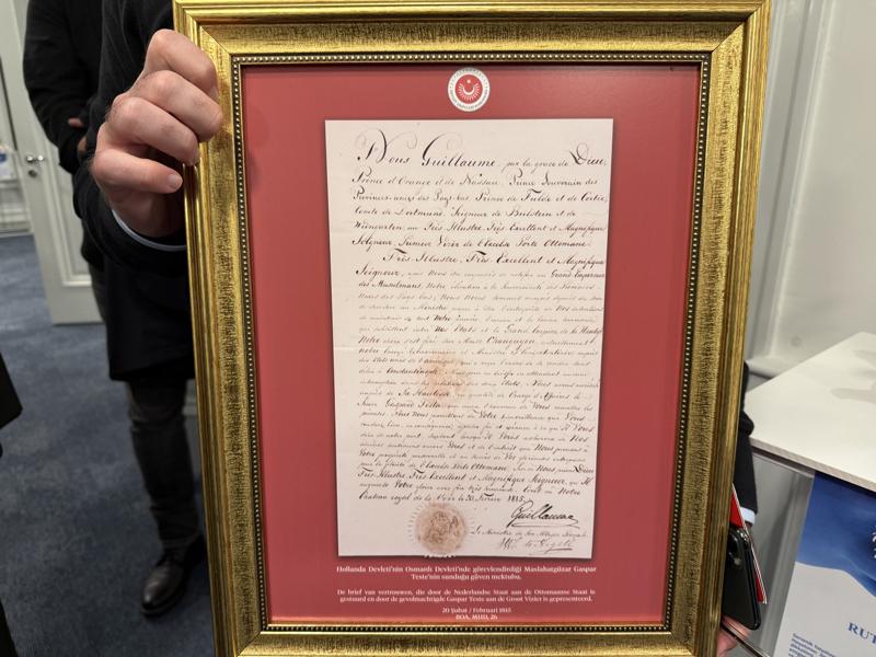 Amsterdam Yunus Emre Enstitüsü'nde, Osmanlı-Hollanda diplomatik ilişkilerinin 5 asırlık mirasçısı Testa ailesinin en önemli temsilcilerinden Gaspar Testa'nın, Osmanlı Devleti'nde maslahatgüzar olarak göreve başlarken padişaha sunduğu güven mektubunun bir kopyasının, ailesinin temsilcilerine teslim edilmesi için tören düzenlendi.