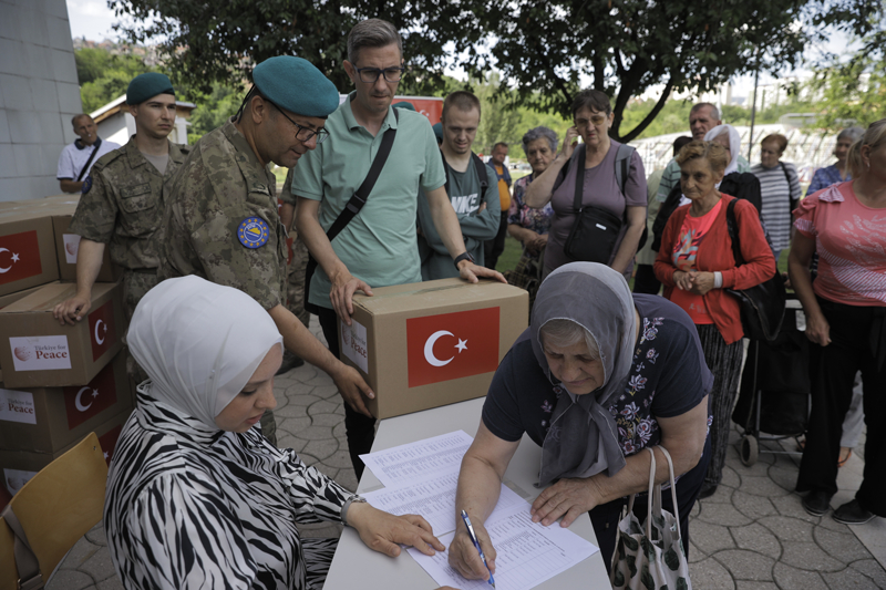 BHTTH bünyesinde görevli Türk askerleri, başkentteki İstiklal Camisi avlusunda Bosna Hersek İslam Birliği tarafından belirlenen ihtiyaç sahiplerine içerisinde gıda malzemeleri bulunan kolileri teslim etti.