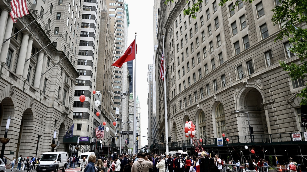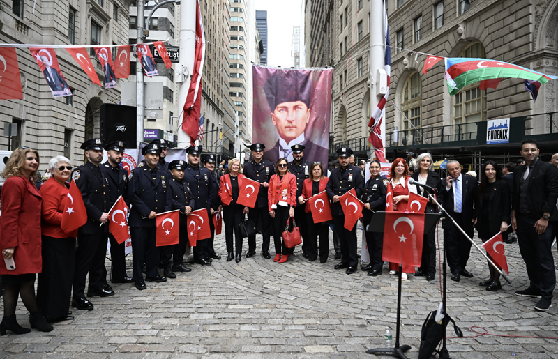Türk Amerikan Dernekleri Federasyonu, Wall Street bölgesindeki meşhur boğa heykelinin de bulunduğu Bowling Green Park'ta (TADF) "41. Geleneksel New York Türk Yürüyüşü ve Festivali Bayrak Çekme" töreni düzenledi.