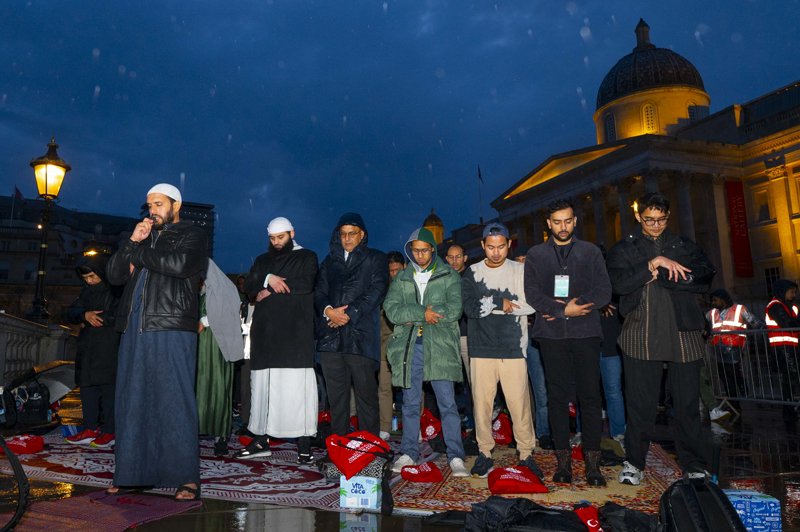 "Ramazan Çadırı Projesi"nin 11. yılında başkentin ünlü meydanında gerçekleştirilen iftar programına, farklı milletlerden Müslümanların yanı sıra diğer din ve inançlardan çok sayıda kişi katıldı. Etkinliğe katılanlar arasında Londra Belediye Başkanı Sadık Khan da yer aldı.