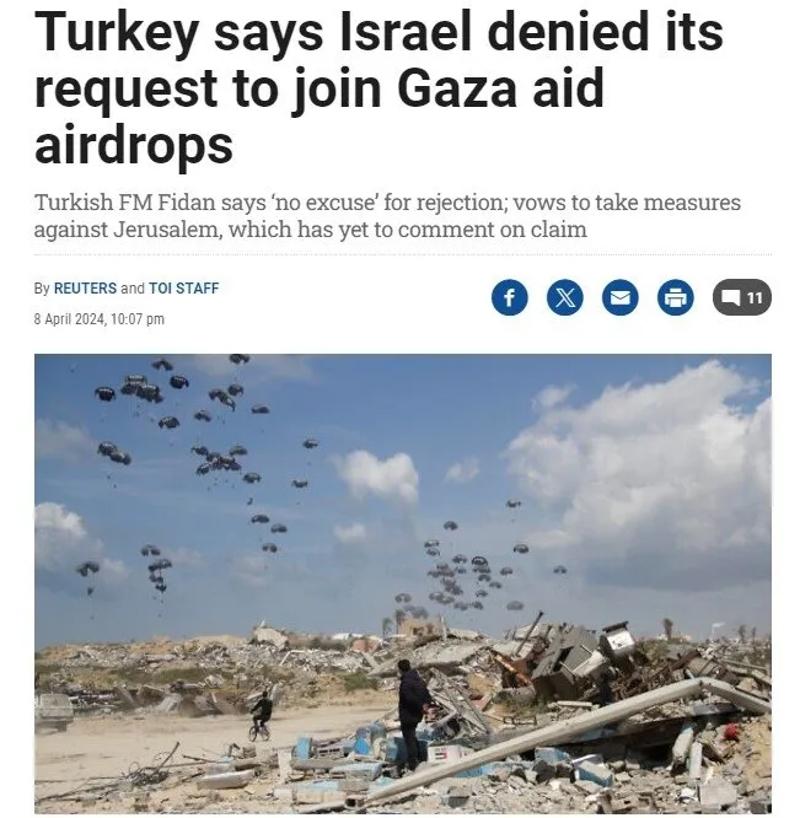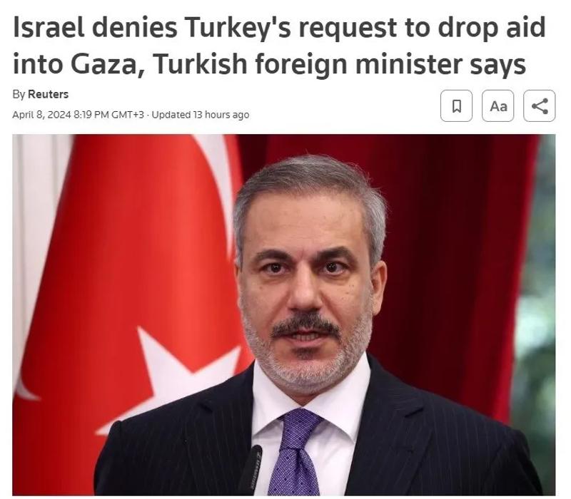 İsrail'in Gazze işgaline ilk günden bu yana sert tepki veren ve ateşkesin sağlanması için diplomasi çabalarını yürüten Türkiye, dün yaptığı çıkışla dünya gündemine oturdu. Dışişleri Bakanı Hakan Fidan, Türkiye'nin Ürdün üzerinden Gazze'ye havadan yardım gönderme talebinin İsrail tarafından reddedildiğini açıkladı.