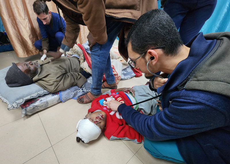 İsrail ordusu, Gazze'de on binlerce yaralı ile sivilin sığındığı onlarca hastaneyi zorla tahliye ettirmek için yerleşkelerini ya da ana binalarını vurdu. İşgal sırasında bazı hastaneleri bastı. Saldırılarda yüzlerce kişi öldü ve yaralandı.