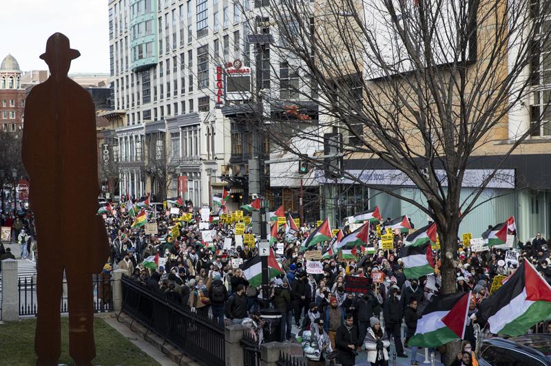 Filistin'e destek veren birçok grubun ortaklaşa organize ettiği Gazze'ye destek gösterisi, Washington'da bir kez daha İsrail ve ona destek veren ABD yönetimine tepkisini ortaya koydu.