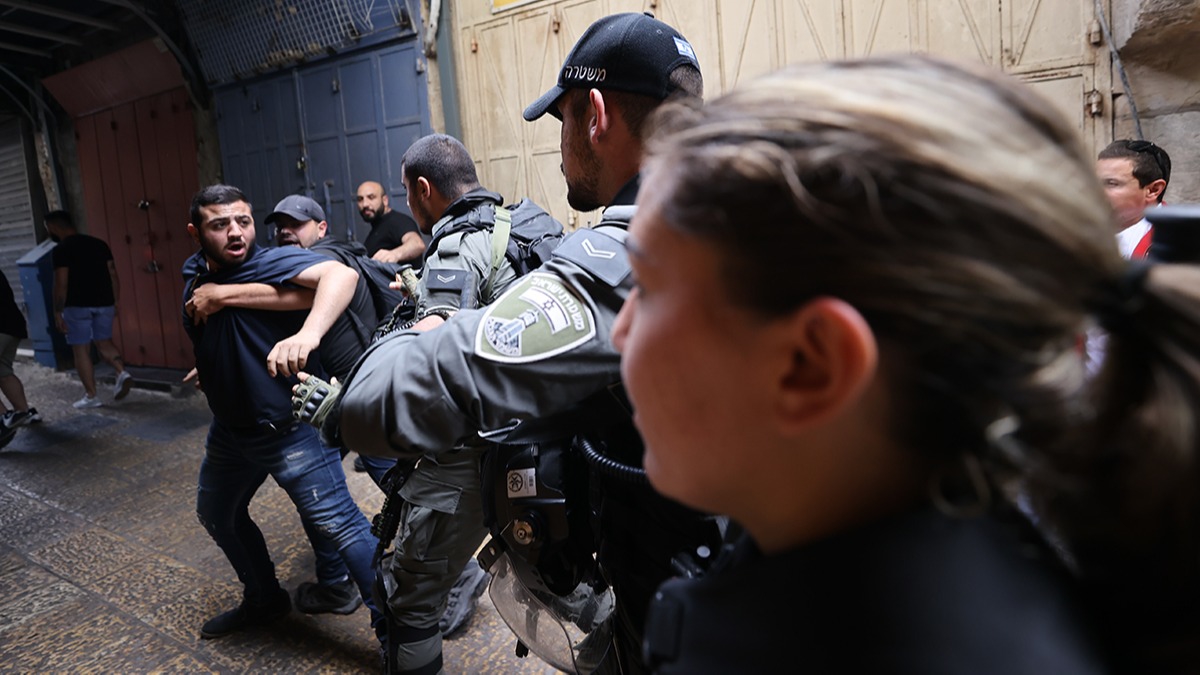 Şam Kapısı'ndaki Filistinlilerin, fanatik Yahudi yerleşimcilerin provokasyonuna karşılık vermesi üzerine çıkan arbedede sandalye ve yabancı maddeler havada uçuştu.