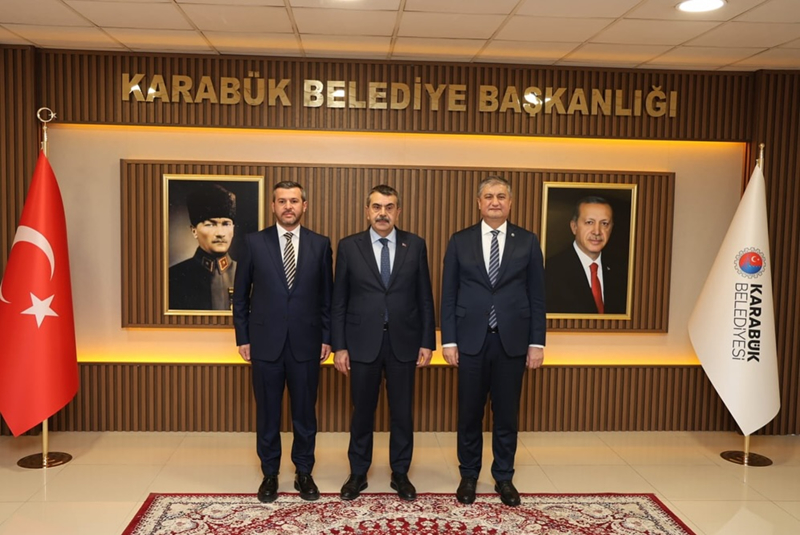 Bakan Tekin, daha sonra Karabük Belediyesine geçerek Belediye Başkanı Özkan Çetinkaya ile görüştü.