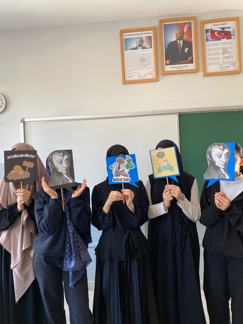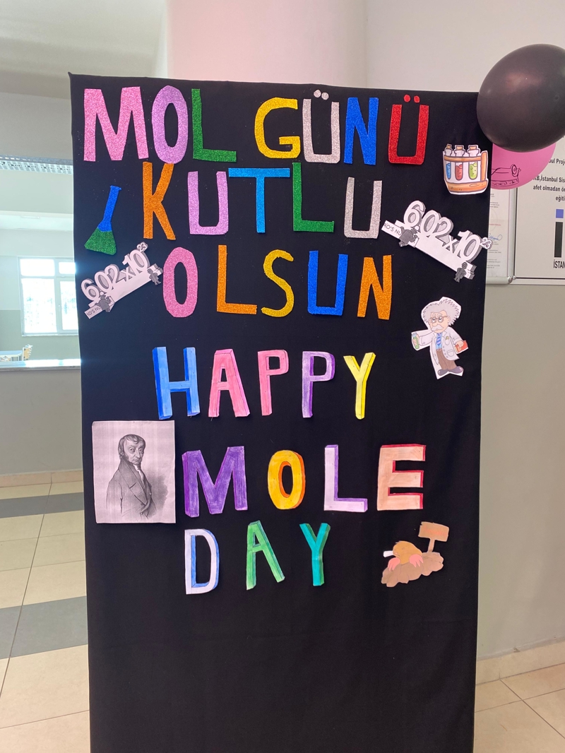 Kimyada önemli bir sayı olan Mol sayısının (6,02.1023) önemini vurgulamak, öğrencilerin dikkatini çekebilmek amacıyla yapılan kutlamada hazırlanan pano ve afiş çalışmaları ile birlikte Mol sayısı kurabiyeleri ve Mol günü şarkıları konuya olan ilginin ve farkındalığın artması sağlandı.