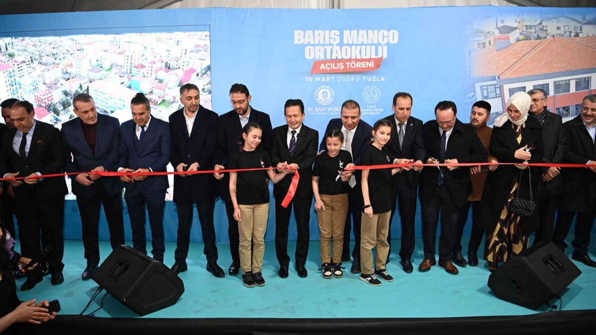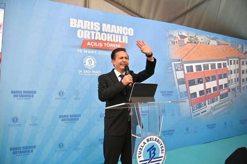 Tuzla Belediye Başkanı Dr. Şadi Yazıcı, "16 derslikli Barış Manço Ortaokulu'nun açılışını gerçekleştirdik. Burada ikili eğitim yapılıyordu, tekli eğitime geçildi. 7 yeni okul inşaatı devam ediyor. Çocuklarımızın eğitimi bizim için çok kıymetli; bu kapsamda 9 okul, 2 anasını okul yaptık. Bilim sanat merkezimizi de salı günü açıyoruz. Ama okullarımızı sadece açmakla bırakmıyor, boyasını, badanasını, bütün tadilatı, tamiratlarını da yapıp teslim ediyoruz. Eğitim materyalleri, bilişim sınıfları, laboratuvarlar, okulların dezenfeksiyonu hepsi antiseptik alana uygun olarak bütün çalışmalarımızı çocuklarımız için yapıyoruz. 50 bin öğrencimize kırtasiye yardımında da bulunuyoruz. Özellikle ihtiyaç sahibi belli bir sayıdaki çocuklarımızı okullarımızda tespit ederek her okulda 20-30 öğrencimize de öğle arasında yemek veriyoruz" şeklinde konuştu.