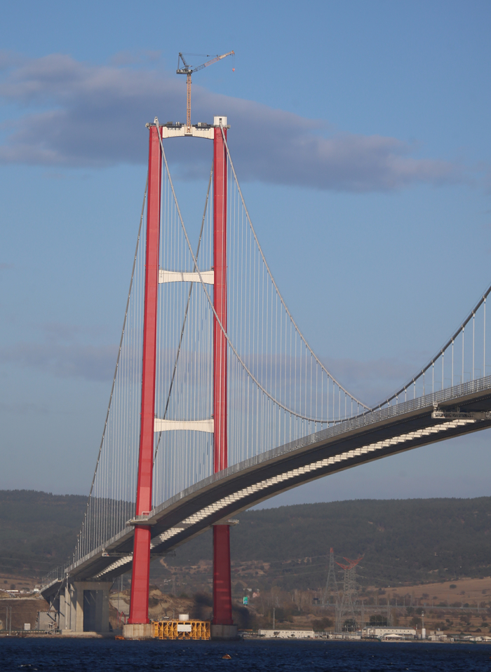 Açılışı 18 Mart'ta Cumhurbaşkanı Recep Tayyip Erdoğan'ın da katıldığı törende gerçekleştirilen köprünün her iki yakadaki kulelerinin zirvelerine yerleştirilecek Seyit Onbaşı'nın Çanakkale Savaşları'nda namluya sürdüğü top mermilerini simgeleyen eserlerin montajı için hazırlıklar başladı.