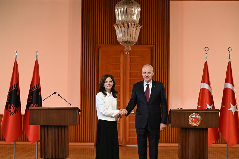 Arnavutluk Meclis Başkanı Elisa Spiropali, Türkiye Büyük Millet Meclisi (TBMM) Başkanı Numan Kurtulmuş ile görüşmesinin ardından Meclis'te düzenlenen ortak basın toplantısında konuştu.