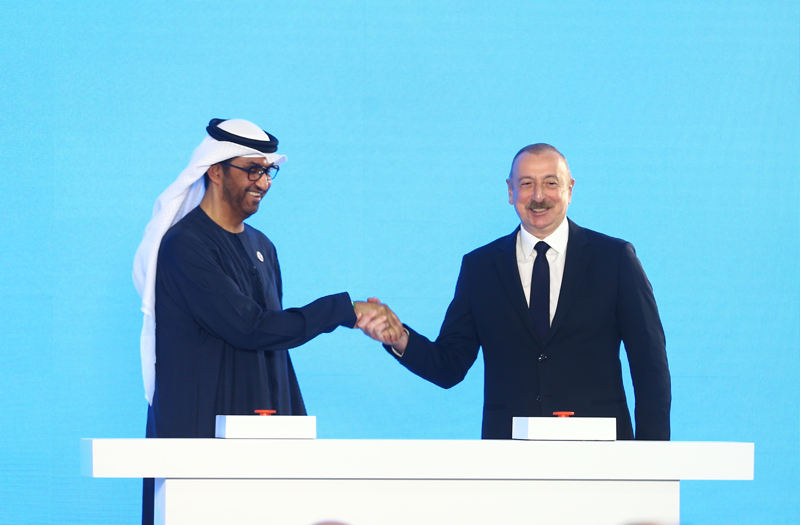 İşgalden kurtarılan Karabağ ve Doğu Zengezur bölgesinin hidroelektrik açısından büyük bir potansiyele sahip olduğunu vurgulayan Aliyev, "Kasım 2020'de bu bölgeleri özgürleştirdikten sonra zaten 270 megavatlık hidroelektrik santralini devreye aldık. Üç-beş yıl içinde bu rakamı 500 megawatt'a çıkaracağız. Yani 1 gigawatt yenilenebilir enerji, uluslararası pazarların ihtiyaç duyduğu ve sahip olacağı 500 milyon metreküp doğalgazdan tasarruf etmemizi sağlayacak. 2027 yılı sonuna kadar 2 gigawatt yenilenebilir enerjiye sahip olacağız. Bu çok gerçek bir rakam ve henüz sadece başlangıç" dedi.