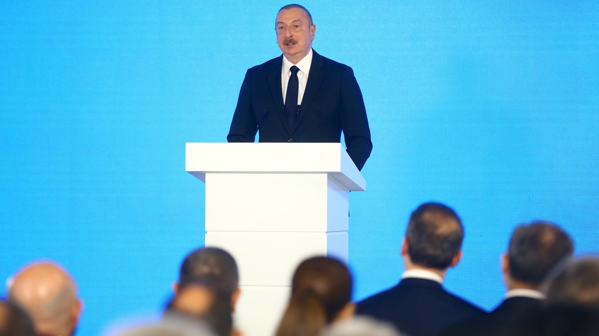 Azerbaycan'ın doğal gaz ihracatını arttığını vurgulayan Aliyev, "Şahdeniz projesiyle Azerbaycan'ın doğalgaz sıkıntısı ortadan kalktı. Bu yıl doğalgaz ihracatımız 24 milyar metreküpü aşacak. Bugün 8 ülke Azerbaycan doğal gazını ithal ediyor. Azerbaycan doğal gaz tedariki konularında güvenilir bir ortak olarak kendisini zaten kanıtlamıştır. Avrupa Komisyonu Azerbaycan'ı Avrupa'nın doğalgaz tedarikçisi olarak adlandırıyor. Yani bugün doğal gazımızı ithal eden 8 ülkeden 6'sı Avrupa ülkeleridir. Tedarik coğrafyamız genişlemeye devam edecektir. Birçok ülkeyle aktif müzakereler yürütüyoruz. Enerji güvenliklerini sağlamak için Azerbaycan doğalgazına ihtiyaç duyan birçok ülkeyle aktif olarak müzakere ediyoruz. Son 30 yılda imzalanan tüm anlaşmalar eksiksiz olarak uygulandı, parlamento düzeyinde onaylandı ve yasalaştı. Yani o sözleşmelerin tek bir kelimesi veya cümlesi değiştirilmedi. Bu nedenle başka bir hızlı gelişme görüyoruz. Yeşil enerji ve yenilenebilir enerji kaynaklarının üretimi konusunda dahil" diye konuştu.