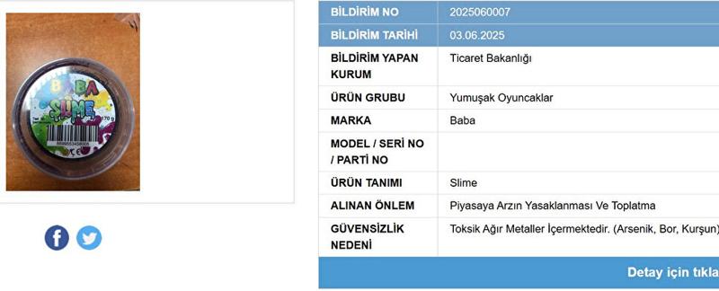 Çocuk sağlığını tehdit eden 'Baba' markalı slime ürününün piyasaya arzın yasaklanması ve toplatılmasına karar verdi.