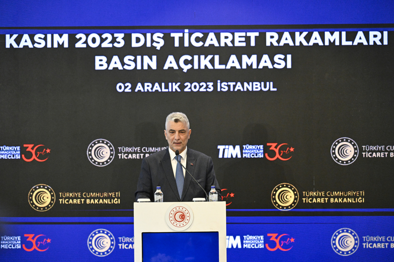 Kasım ayı ihracat verileri, İstanbul'da, Ticaret Bakanı Bolat ve Türkiye İhracatçılar Meclisi (TİM) Başkanı Mustafa Gültepe'nin katıldığı toplantıyla açıklandı.