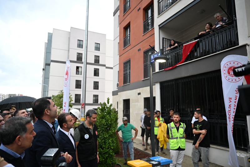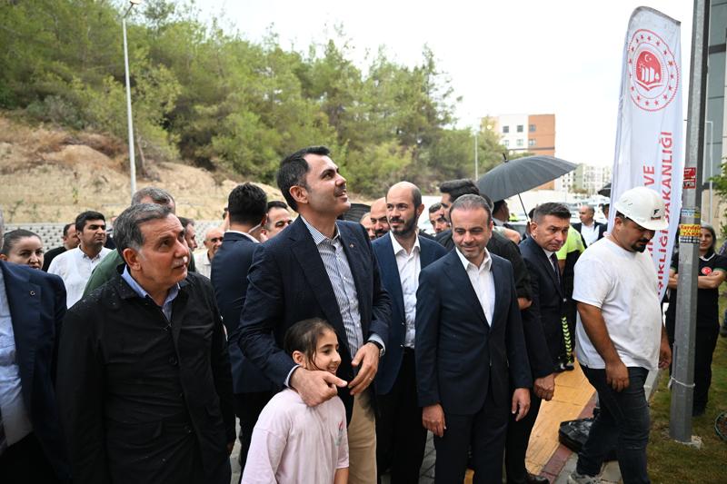 Çevre, Şehircilik ve İklim Değişikliği Bakanı Murat Kurum, Adana'nın merkez Çukurova ilçesinde hak sahiplerine teslim edilen deprem konutlarını gezdi.