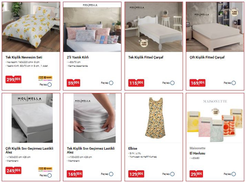 Elbise 129 TLEl Havlusu 29,50 TL