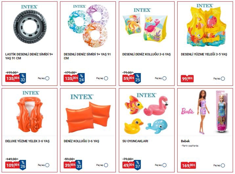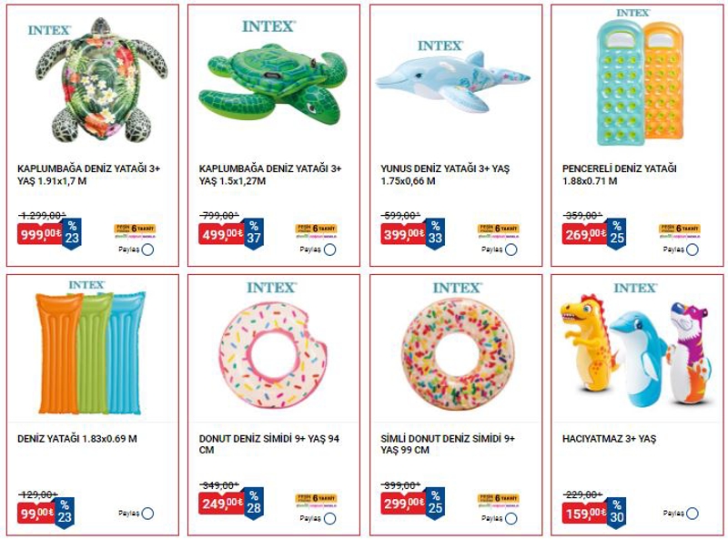 INTEX Ayak Pompası 199 TLINTEX Kaplumbağa Deniz Yatağı 999 TL