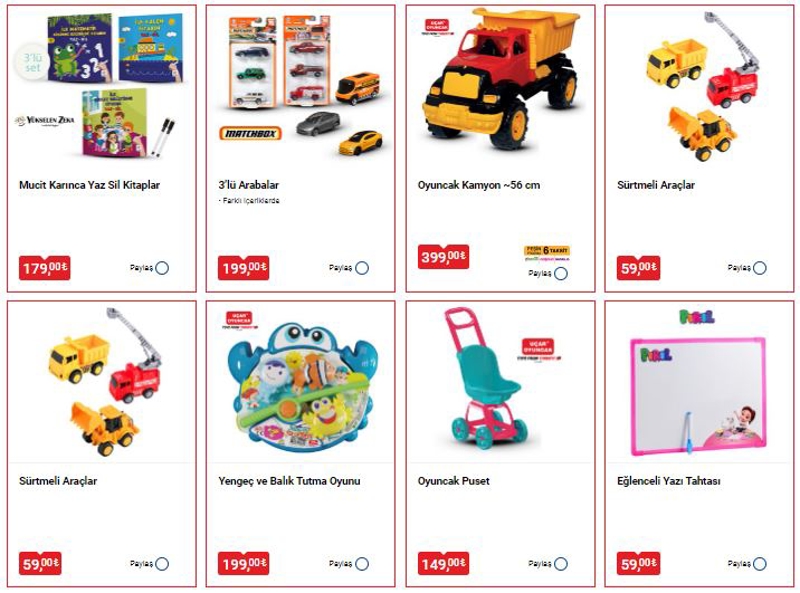 3'lü Arabalar 199 TLOyuncak Kamyon 399 TL