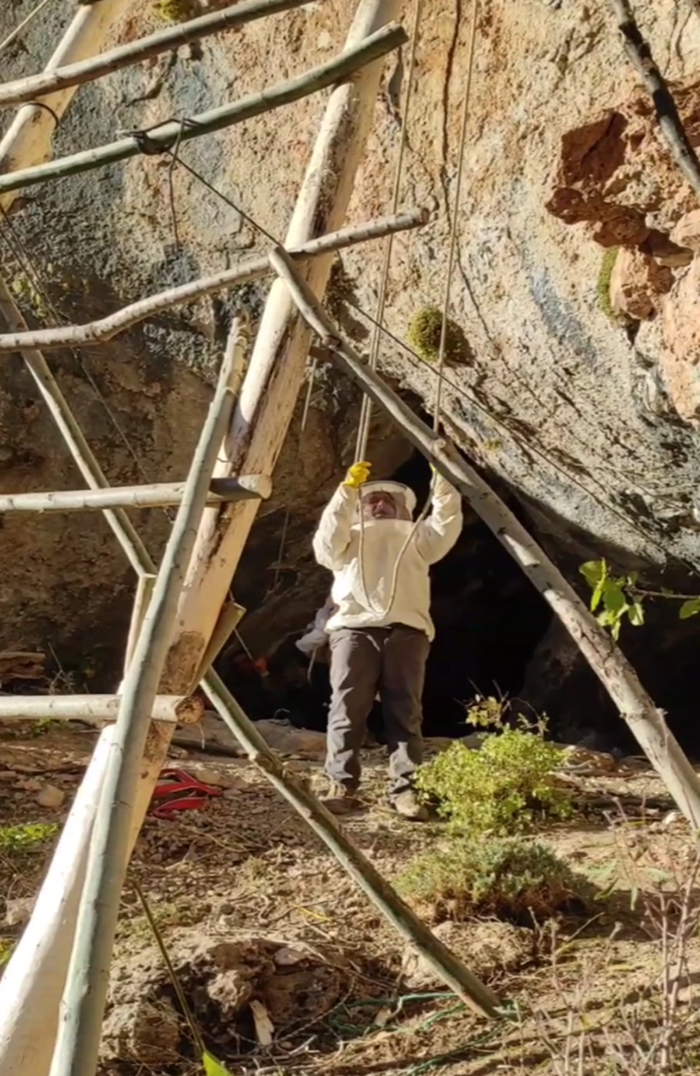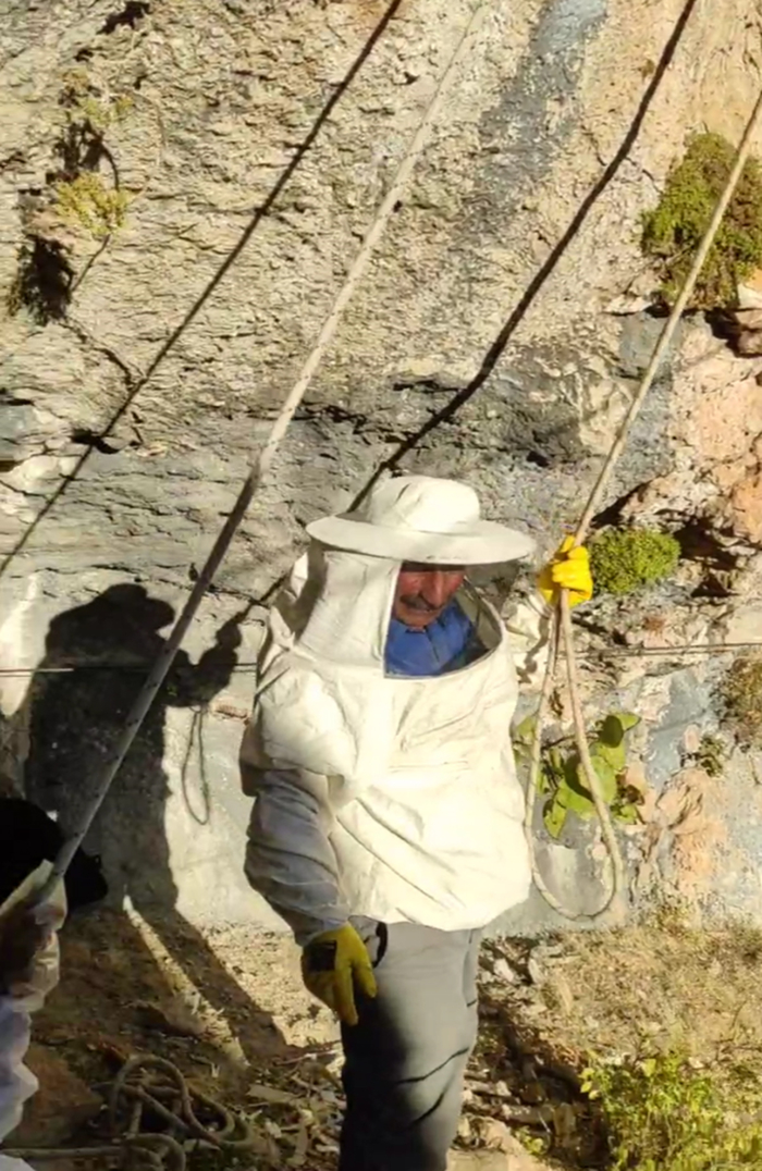 "Temin ettiğimiz ağaçları önce araçla, ardından sırtımızda 700 metre taşıdık. 11 metre uzunluğunda merdiven yaptık. Daha sonra iplerle arkadaşlarımızın güvenliğini alarak yukarı gönderdik. Dumanla arıları sakinleştirip, ardından balı çıkardık. Çok zahmet çektik ama emeğimizin karşılığını aldık. 7 kilogram bal elde ettik. Yaptığımız iş çok riskli ama tedbirlerinizi iyi aldığınız sürece sorun olmaz."