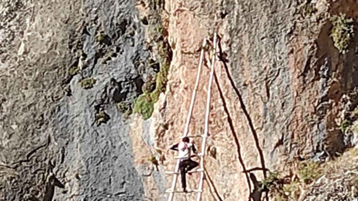 Burada 11 metre uzunluğunda merdiven yapan Kezer, bu sayede ulaştığı yuvadan 7 kilogram kaya balı çıkardı.