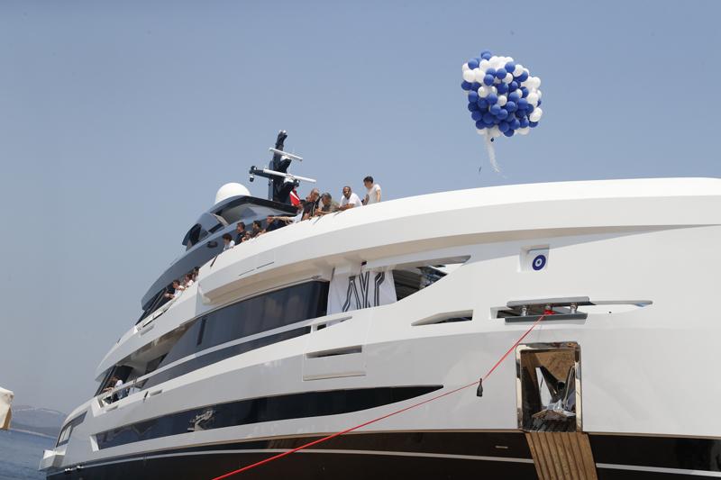 4 güverte, 12 kişilik 6 misafir kabini, 2 salon ve 10 personel için 5 kabinin bulunduğu yat için firmanın tersanesinde denize indirme töreni düzenlendi.