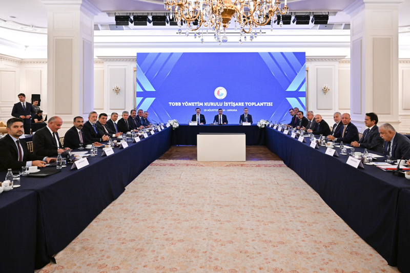 "GELECEĞİMİZ İNŞA EDİYORUZ"Bu kapsamda, Hisarcıklıoğlu'nun ev sahipliğinde, TOBB yönetim kurulu üyelerinin, hem güncellenecek OVP hem de reel sektörü ilgilendiren farklı hususlara ilişkin tespit, görüş ve önerilerini aldıklarını ifade eden Yılmaz, "Dünyada ve bölgemizde ekonomik ve jeopolitik bakımdan zorlu bir dönemden geçerken siyasi istikrar ve güven ortamında, istişarelere dayalı öngörülebilir politikalar ile güçlü bir şekilde geleceğimizi inşa ediyoruz." değerlendirmesinde bulundu.
