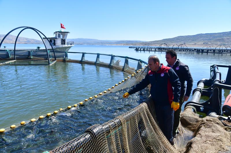 İl Tarım ve Orman Müdürlüğünden yapılan yazılı açıklamaya göre, Yamula Baraj Gölü'ndeki 16 tesiste balıkçılar, tekneyle somon balığı hasadı gerçekleştiriyor.