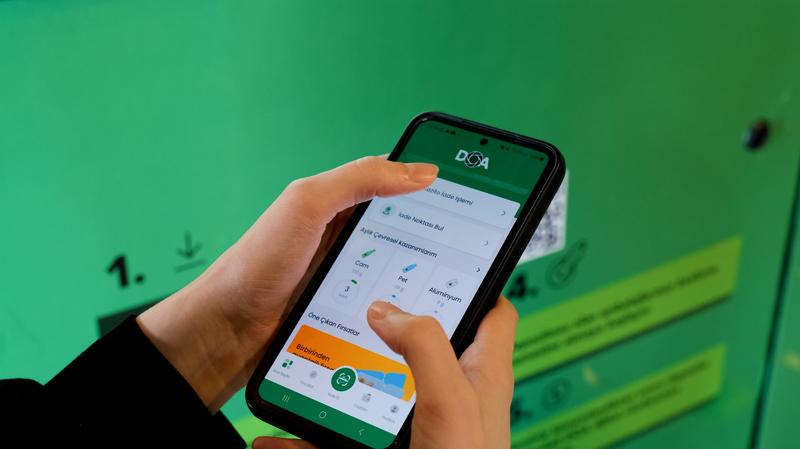 Cumhurbaşkanı Recep Tayyip Erdoğan'ın eşi Emine Erdoğan'ın himayelerinde Çevre, Şehircilik ve İklim Değişikliği Bakanlığınca yürütülen Depozito Yönetim Sistemi projesi kapsamında "Depozitosu Olan Ambalajlar" (DOA) logosu taşıyan plastik, cam ve alüminyum gibi malzemeler, iade makineleri aracılığıyla geri kazandırılıyor.