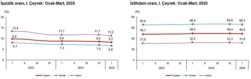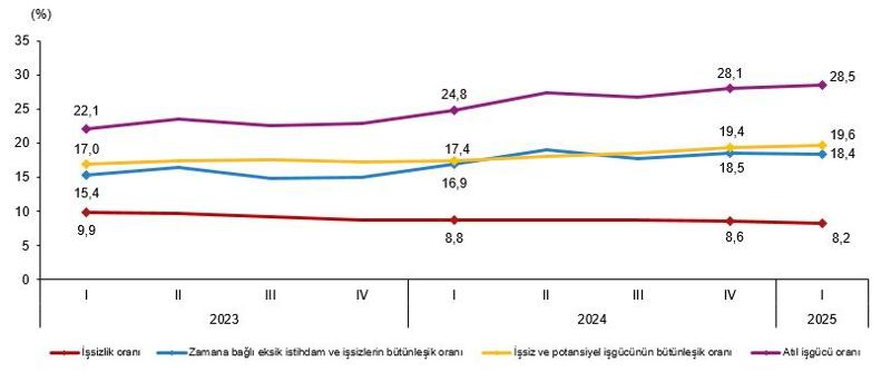 Mevsim etkisinden arındırılmış işsizlik oranı ise 0,4 puanlık azalışla yüzde 8,2 seviyesinde gerçekleşti. Bu oran, 2012 yılı üçüncü çeyreğinden bu yana en düşük oran olarak kayıtlara geçti. Söz konusu dönemde, bu oran yüzde 8,2 olarak gerçekleşmişti.