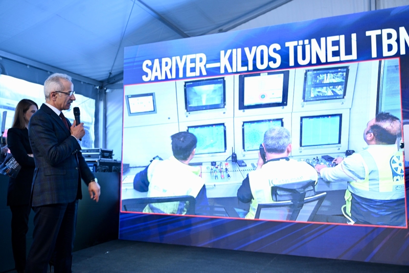 Ulaştırma ve Altyapı Bakanı Abdulkadir Uraloğlu, Sarıyer-Kilyos Tüneli TBM Makinası Hizmete Başlatma Töreni'nde konuştu. TBM makinasının, Türkiye'de Karayolları Genel Müdürlüğü sorumluluğunda ilk kez kullanılacağını belirten Bakan Uraloğlu, "Türkiye'nin coğrafyası, zengin bir çeşitliliğe sahip olsa da ağırlıklı olarak dağlık arazilerin olması inşaat sektörü için hem bir zorluk hem de yenilikçi çözümlerin geliştirilmesini zorunlu kılan bir durumdur." ifadelerini kullandı.