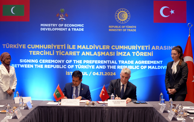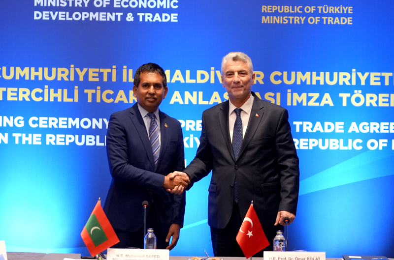 Türkiye ile Maldivler arasında Tercihli Ticaret Anlaşması, Ticaret Bakanı Bolat ve Maldivler Ekonomik Kalkınma ve Ticaret Bakanı Muhammed Saeed tarafından İstanbul'da imzalandı.