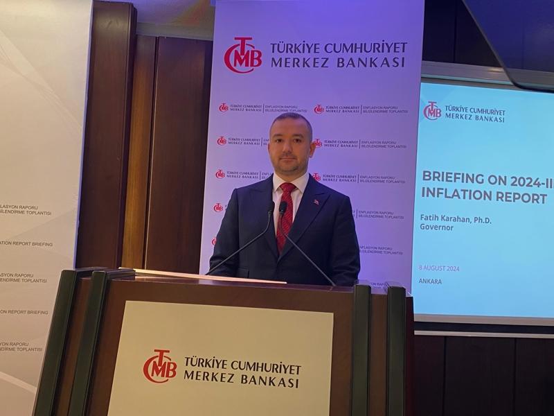 TCMB Başkanı Karahan, Merkez Bankası İdare Merkezi'nde yılın Üçüncü Enflasyon Raporu'nun tanıtımı amacıyla bilgilendirme toplantısı düzenledi.