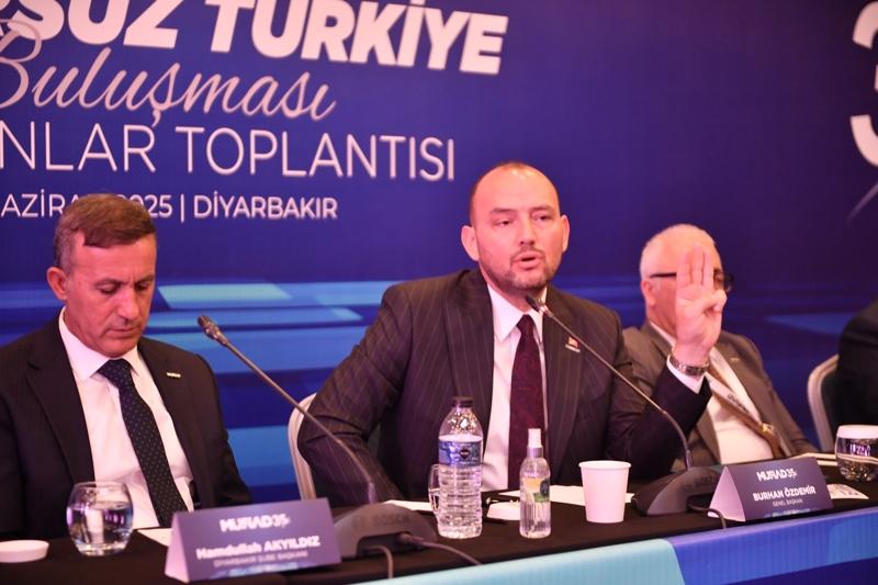 MÜSİAD Genel Başkanı Burhan Özdemir, MÜSİAD Yönetim Kurulu'nun yeni dönem üyeleri ve Türkiye genelindeki 84 şube ve temsilciğin başkanlarının katılımıyla gerçekleşen toplantıda, Terörsüz Türkiye döneminde Türkiye'nin yeni kalkınma vizyonu masaya yatırıldı. Toplantıda gerçekleştirilen basın açıklamasında konuşan Genel Başkan Burhan Özdemir, iş dünyasına ve tüm sivil toplum kuruluşlarına tarihi bir çağrıda bulunarak, bölgenin bir "ihya seferberliği" ile ayağa kaldırılması gerektiğini vurguladı.