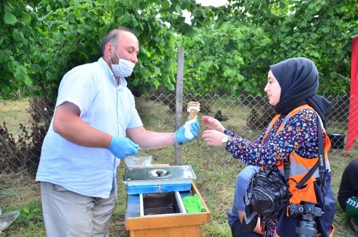 Terme’nin Hüseyinmescit Mahallesi’nde bulunan proje bahçesinde gerçekleştirilen salep sökme hasadına Samsun İl Tarım ve Orman Müdürü İbrahim Sağlam, Karadeniz Tarımsal Araştırma Enstitüsü Müdürü Doç. Dr. Kibar Ak, DOKAP Başkanı Yusuf Mengi, proje koordinatörü Prof. Dr. Yüksel Kan, Terme Kaymakamı Murat Zadeleroğlu, Terme Belediye Başkanı Ali Kılıç, Terme Tarım ve Orman Müdürü Tuncay Demir, ziraat danışmanları ve çok sayıda çiftçi katıldı. Program sonrasında katılımcılara salep ile üretilmiş dondurmalar ikram edildi.
