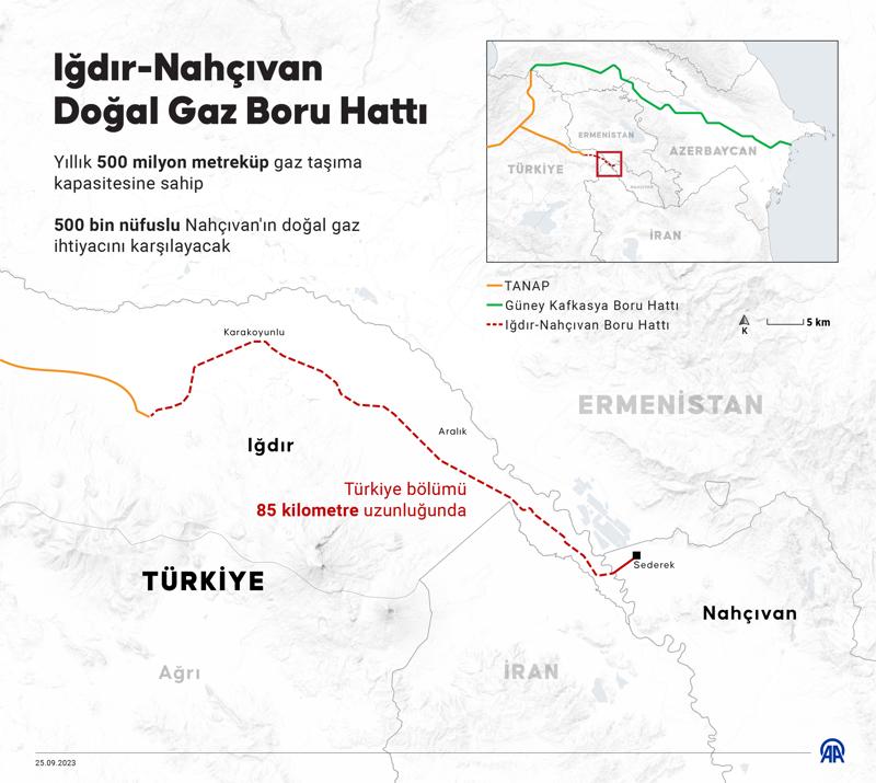 "Bizim ihracat noktalarımız da var. Bunlardan biri Bulgaristan, biri Yunanistan. Artık bunlara bir yenisi daha ekleniyor. Nahçıvan'a doğal gaz ihracatına başlıyoruz. Iğdır-Nahçıvan boru hattı tamamlanmış durumda. Sayın Cumhurbaşkanı'mız Recep Tayyip Erdoğan ve Sayın Azerbaycan Devlet Başkanı İlham Aliyev'in katılımlarıyla inşallah bir tören düzenlenecek. Bu hafta bu doğal gaz boru hattını, Türkiye'nin yeni bir bağlantısını da sağlamış olacağız. Türkiye üzerinden artık Nahçıvan'ın gaz ihtiyacı karşılanmış olacak."
