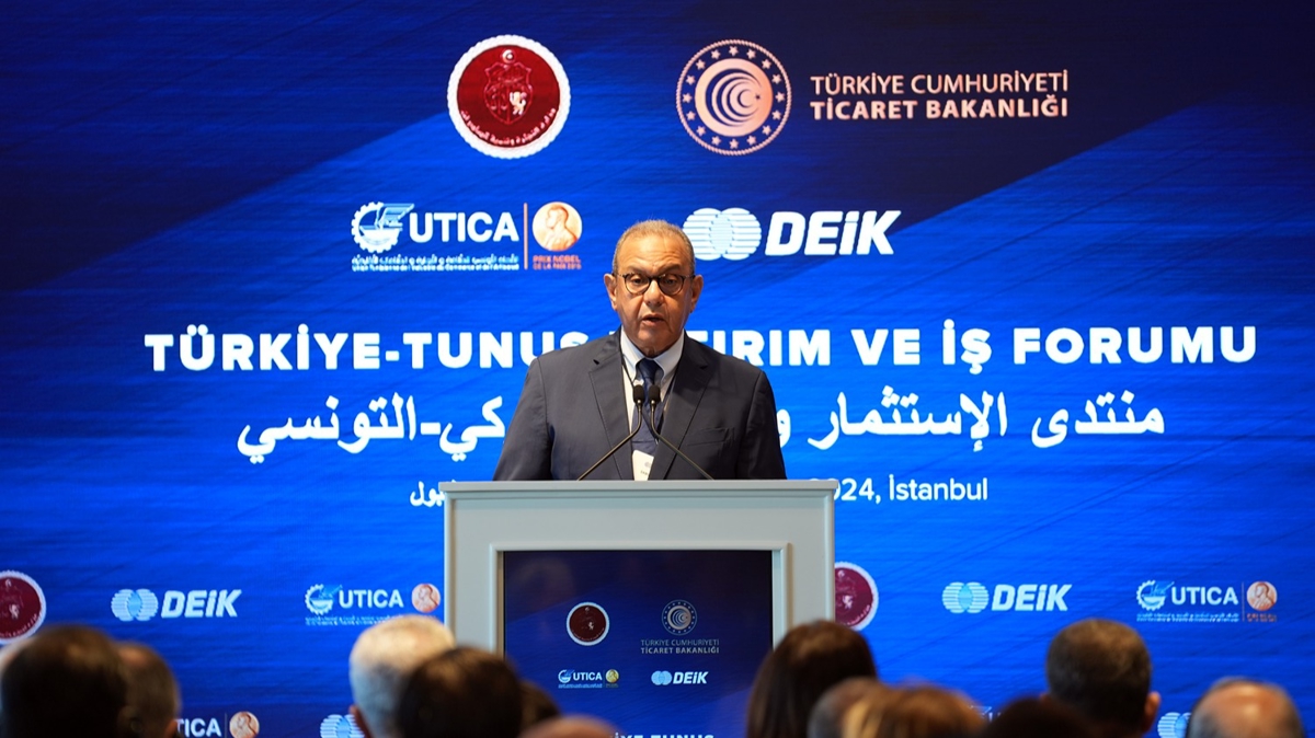 "Tunus-Türkiye ilişkileri son yıllarda, özellikle serbest ticaret anlaşmasının tamamen yürürlüğe girmesinden sonra büyük ivme kazandı. 2023 yılında 1,5 milyar dolarlık bir ticaret hacmine ulaşmış bulunmaktayız. Siyasi iradenin destekleriyle daha da artırmayı düşünmekteyiz ve iki ülke arasındaki STA'nın da yürürlüğe girmesiyle artacağından eminiz. Tunus Akdeniz Havzası'nda yer alan bir ülke. Bu yatırımcılar için, ekonominin daha da gelişmesi için önemli bir avantaj teşkil ettiğini belirtmek isterim."