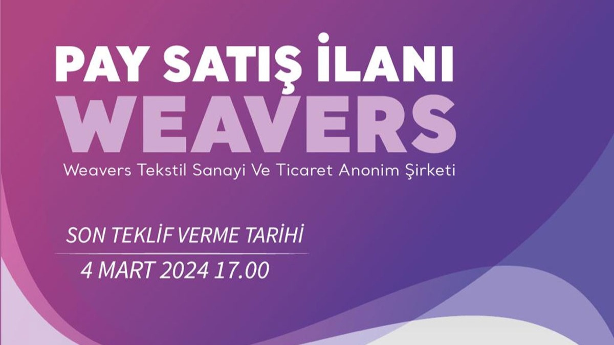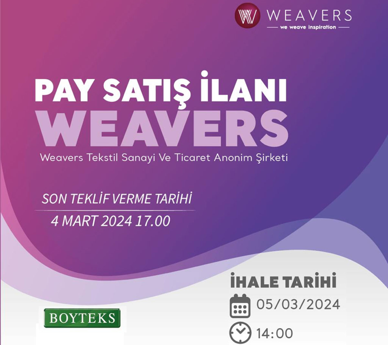 Boyteks Tekstil AŞ, döşemelik ve perdelik kumaş üreticileri arasında yer alan Weavers Tekstil Sanayi ve Ticaret Anonim Şirketindeki (Weavers) paylarını; açık ihale usulü ile kapalı teklif isteme ve açık artırma yöntemlerinin birlikte uygulanması suretiyle satışa sundu.