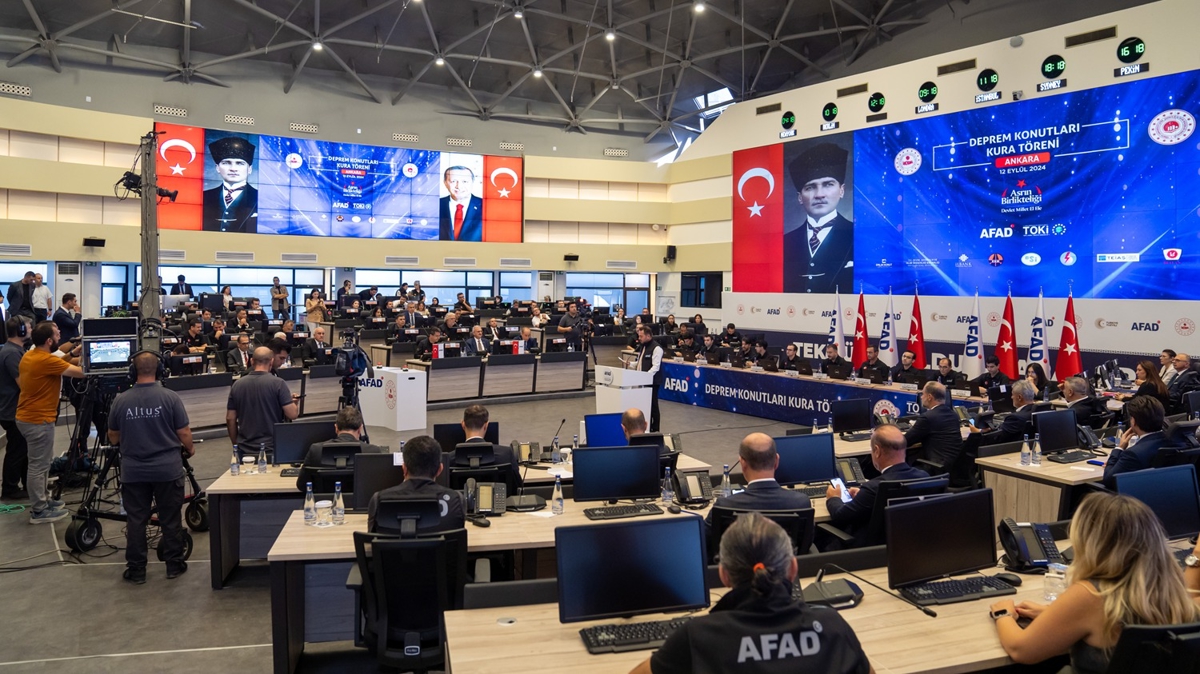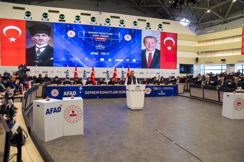 Afet ve Acil Durum Yönetimi Başkanlığı'nda (AFAD), depremden etkilenen Hatay, Malatya, Kahramanmaraş, Adıyaman, Gaziantep, Diyarbakır, Elazığ, Osmaniye, Şanlıurfa, Adana ve Kilis'te yapımı tamamlanan 24 bin 812 konutun hak sahibi vatandaşlarla buluşturulması için "Deprem Konutları Kura ve Anahtar Teslim Töreni" gerçekleştirildi.