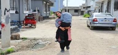 Engelli çocuğunu her gün kucağında taşıyor