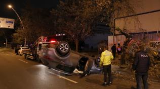 Ağaca çarpıp ters döndü!